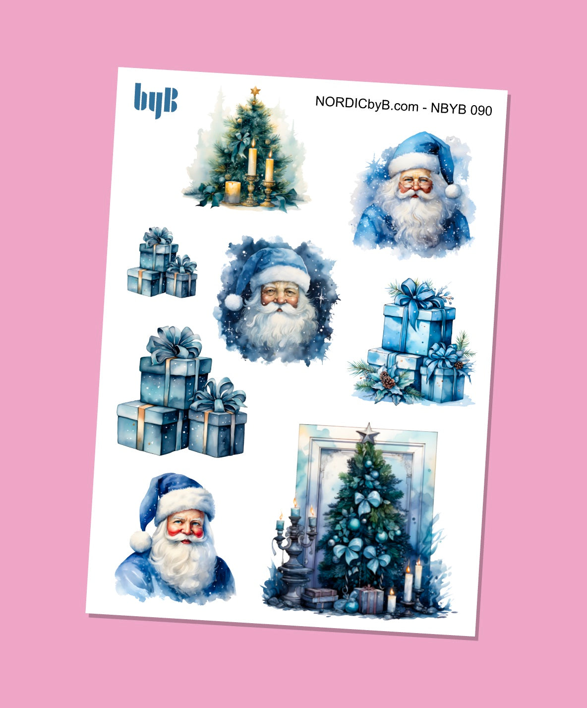 Sticker Sheet with Blue Santa Christmas Theme