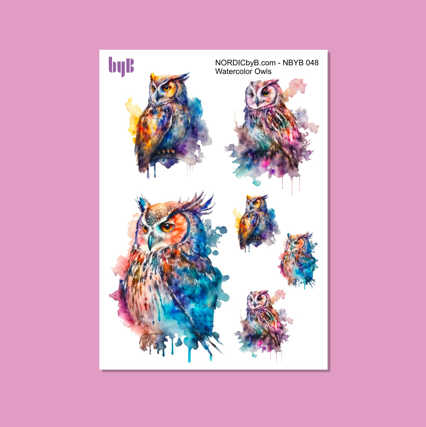Sticker Sheet with Watercolor Owls